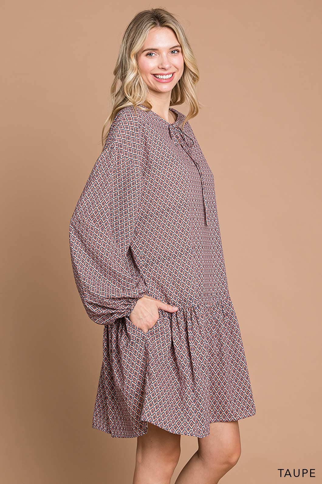Women’s Boho Tile Printed Babydoll Dress