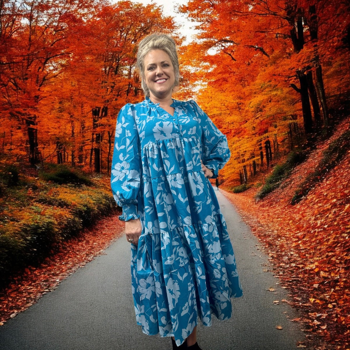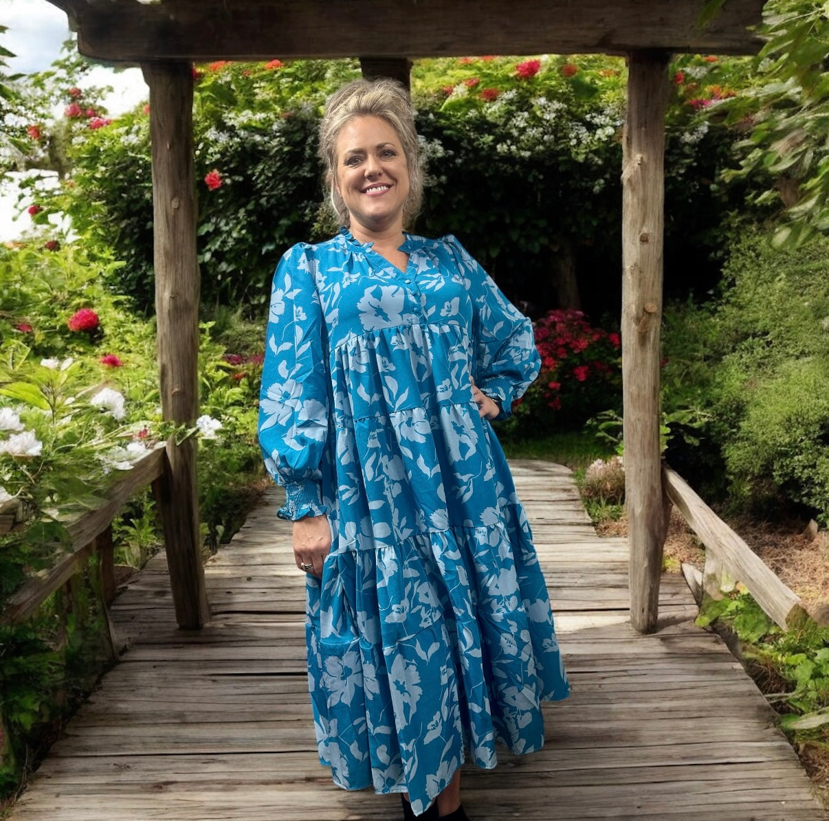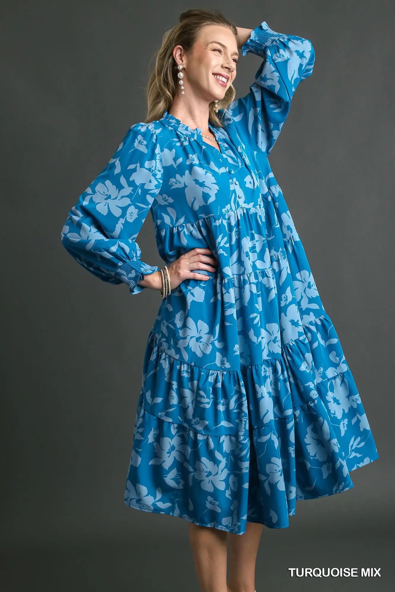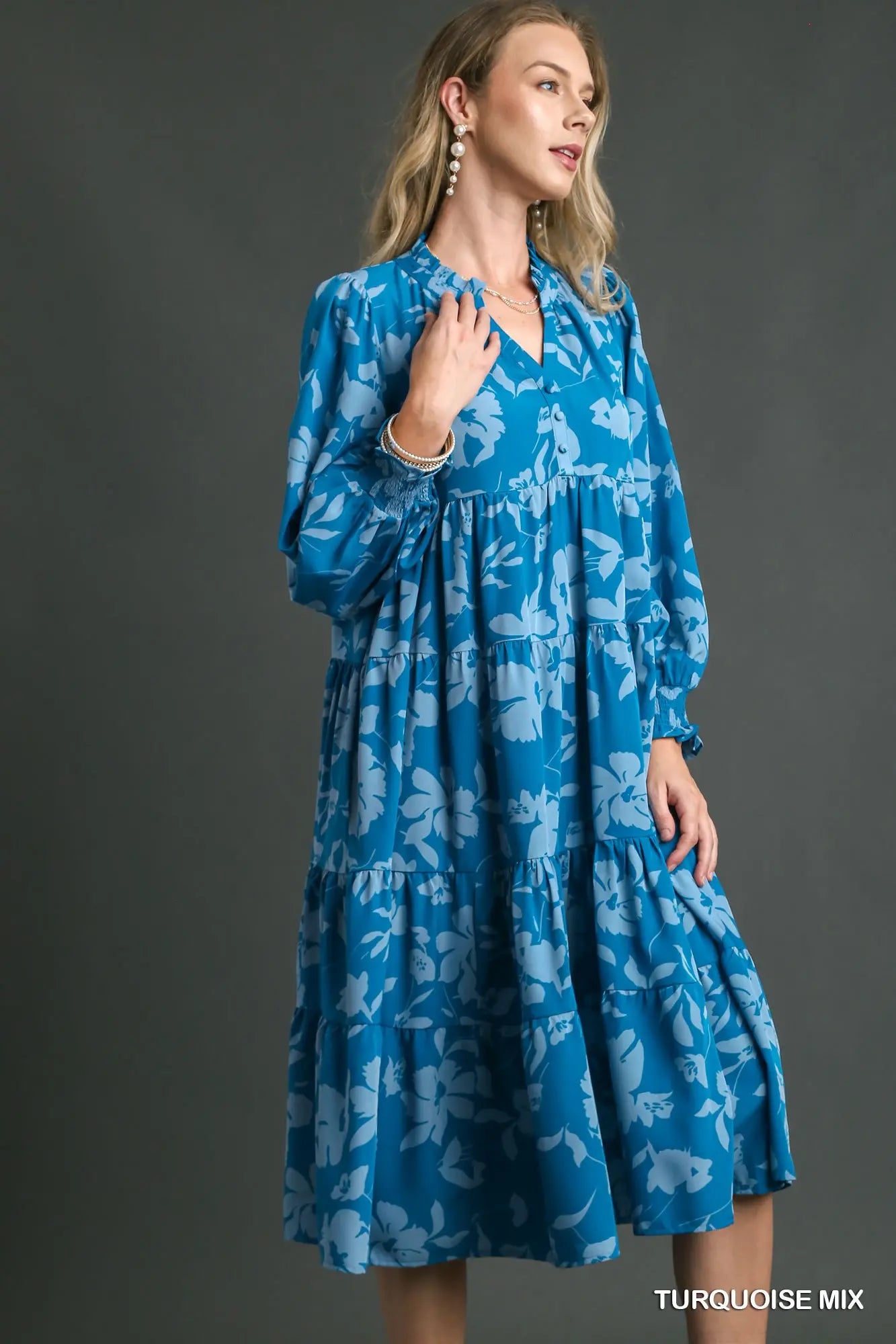 Turquoise Tiered Floral Print Dress