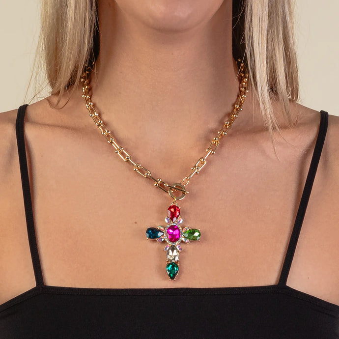 Crystal Cross Necklace-Multi $16.00