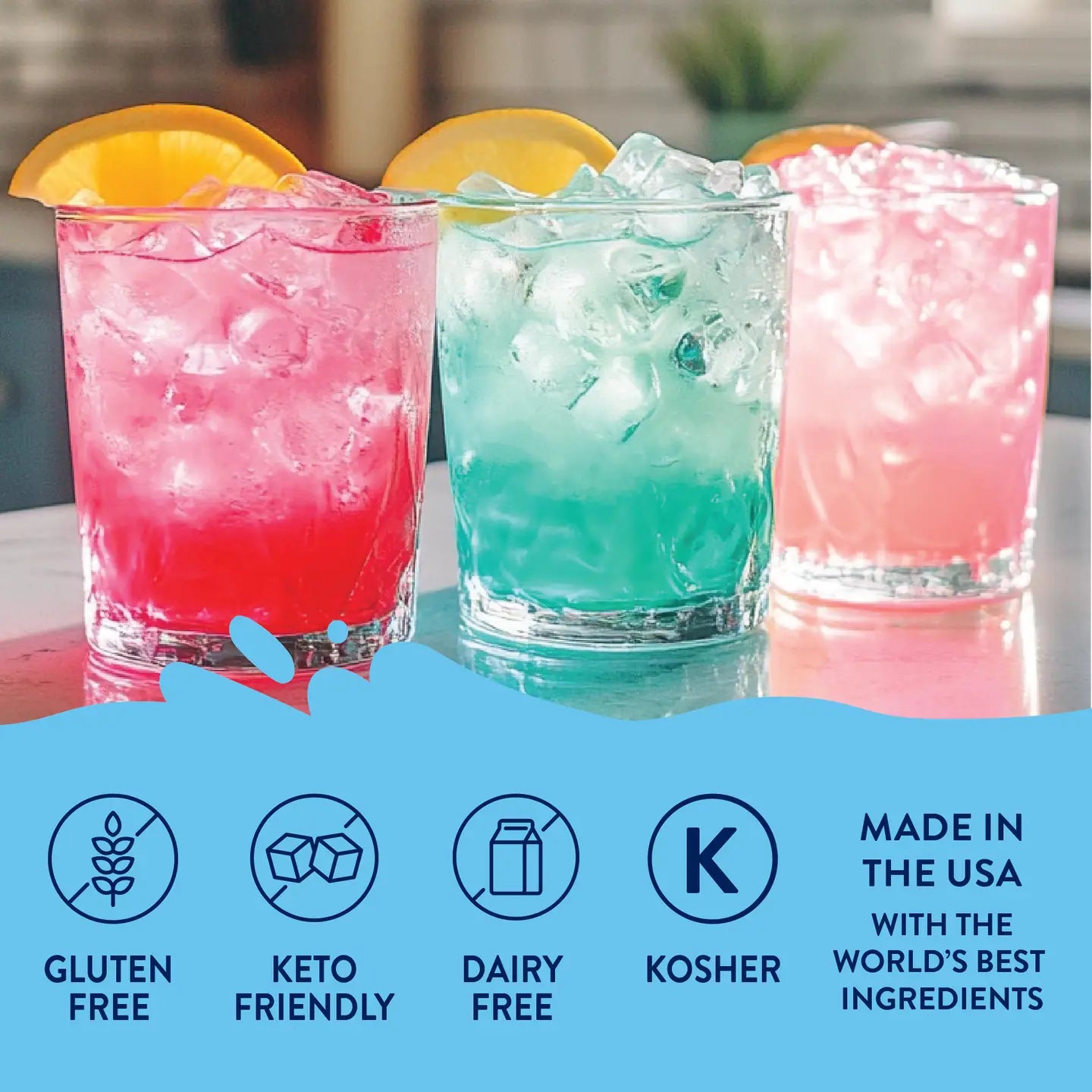 Indulge in your wildest flavor fantasies with our sugar-free syrup trio! This trial pack features Mermaid, Unicorn, and Cotton Candy flavors to elevate any drink. Perfect for all-day hydration (hello #WaterTok!), iced tea, lemonade, or cocktails - just add our 0 sugar, 0 calorie, 0 carb syrups for a sweet twist.