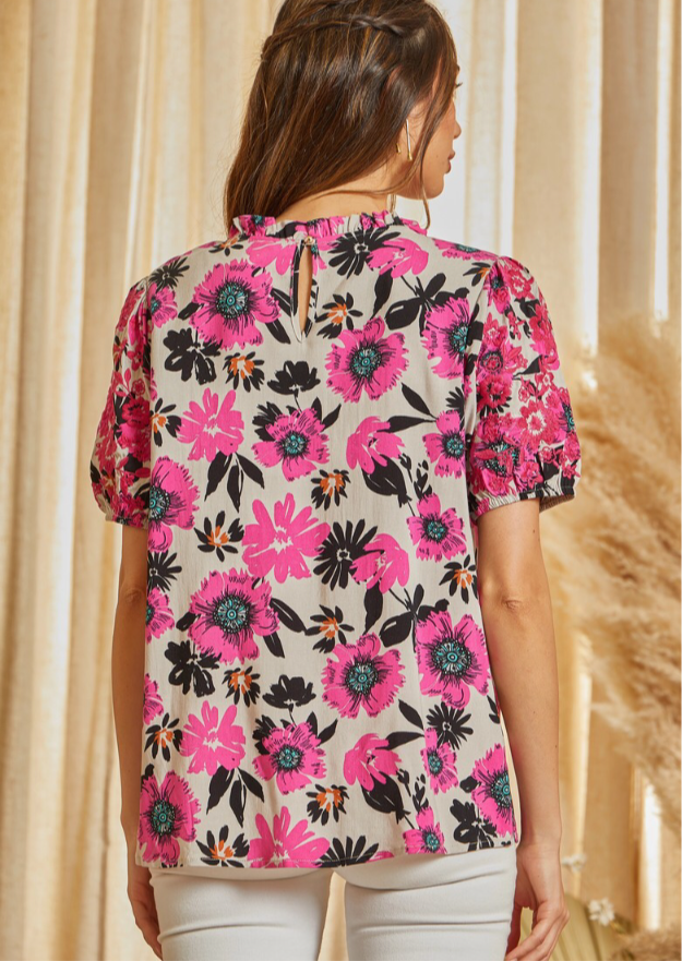 Hot Pink & Gray Short Sleeve Top